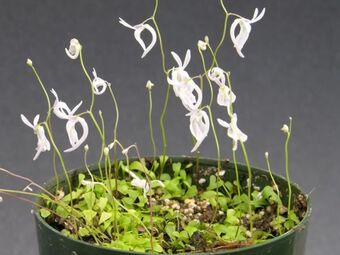 La Utricularia Sandersonii es quizás la planta terrestre más fácilmente identificable cuando está en flor. Sus encantadoras flores blancas se asemejan a cabezas de conejos blancos suspendidos en el aire. A pesar de que la magia carnívora ocurre por debajo del nivel del suelo (atrapan microorganismos con las raíces), las utricularias generalmente se cultivan para admirar las pequeñas flores parecidas a las orquídeas.
